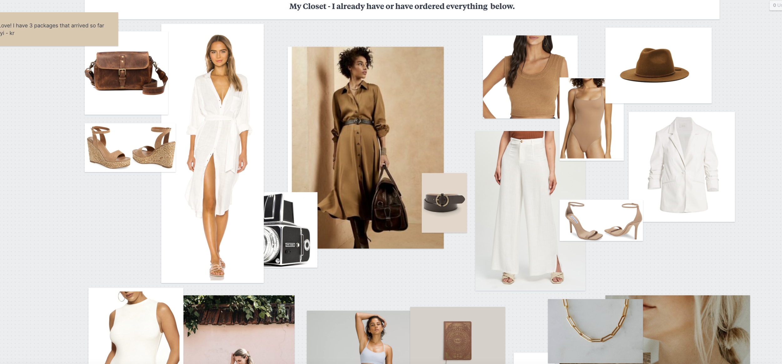 Now, the images you pull may not feature the model in a wardrobe capsule that matches your client. So once you’ve pulled inspiration shots, pull inspiration wardrobe next. Now, it all to your session prep board (see below) so that your client can see the full picture.