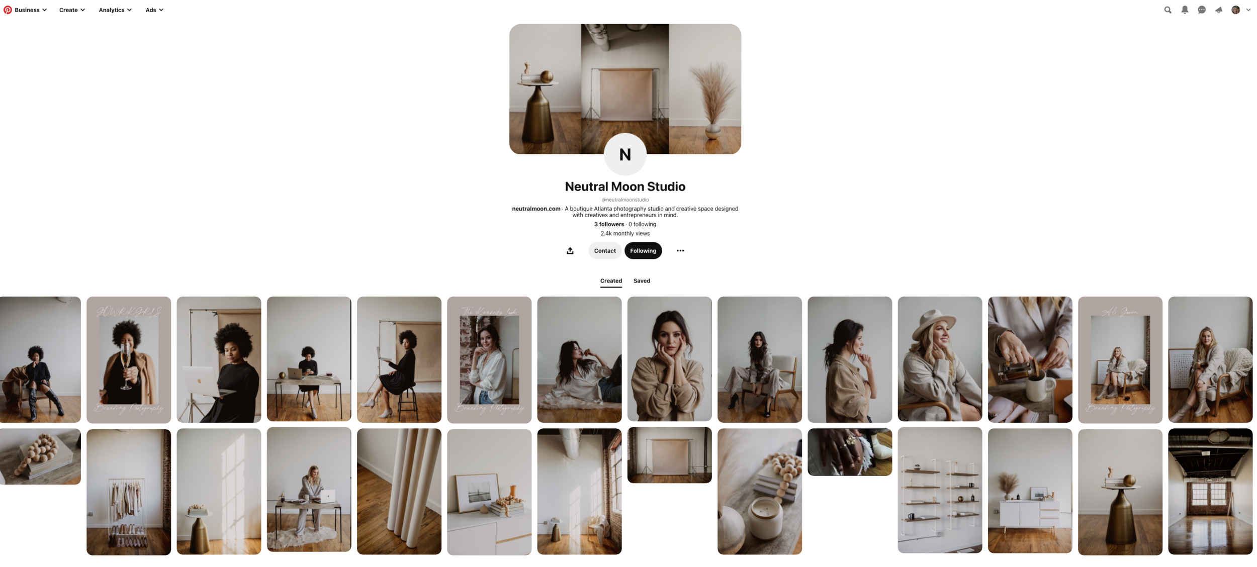 Pinterest is a great place to pull inspiration images because you can search by keyword. So if your branding client is an interior designer, start by searching “interior designer branding session” to get ideas that are specific to that line of work. You can add them to a private board, but we like to screenshot these images to use them outside of Pinterest. Once you’ve saved brand-specific inspiration images, be sure to look for general images and detail shots that match your own photography vibe. For example, if we were searching for our own brand client, we would also look for editorial studio images because that’s what we shoot in the studio.